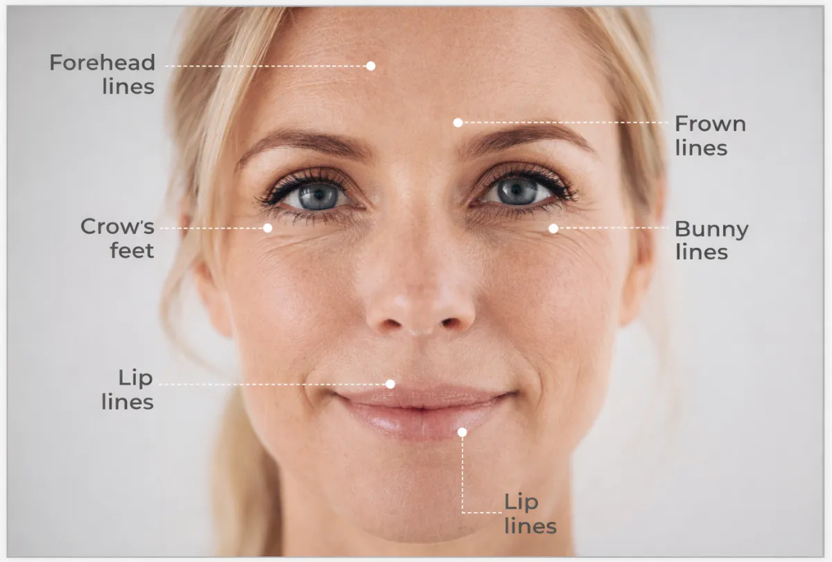 Treat forehead lines, frown lines, crows feet, lip lines, & more!